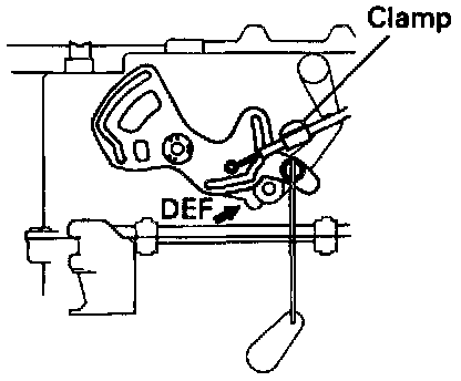 Set the mode damper on DEF position, install the control cable and lock the clamp.