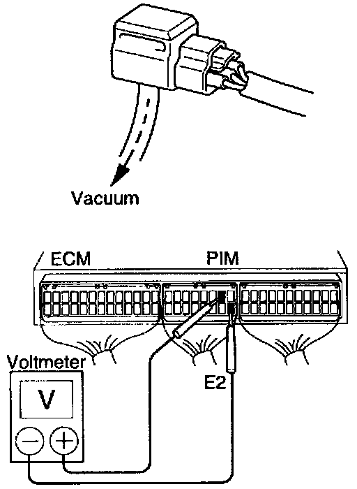 (c) Connect a voltmeter to terminals PIM and E2 of the ECM. and measure the output voltage under ambient atmospheric pressure.