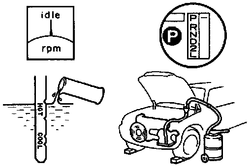 (e) With the engine idling, check the fluid level. Add fluid up to the COOL level on the dipstick.