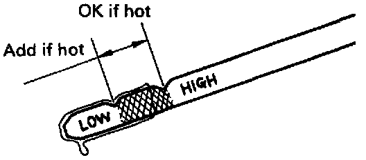 (d) Pull it out and check the oil level, as shown in the illustration.