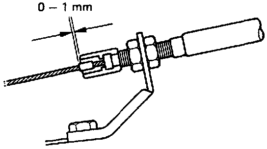 (d) Adjust the outer cable so that the distance between the end of the boot and stop per on the cable is as standard.