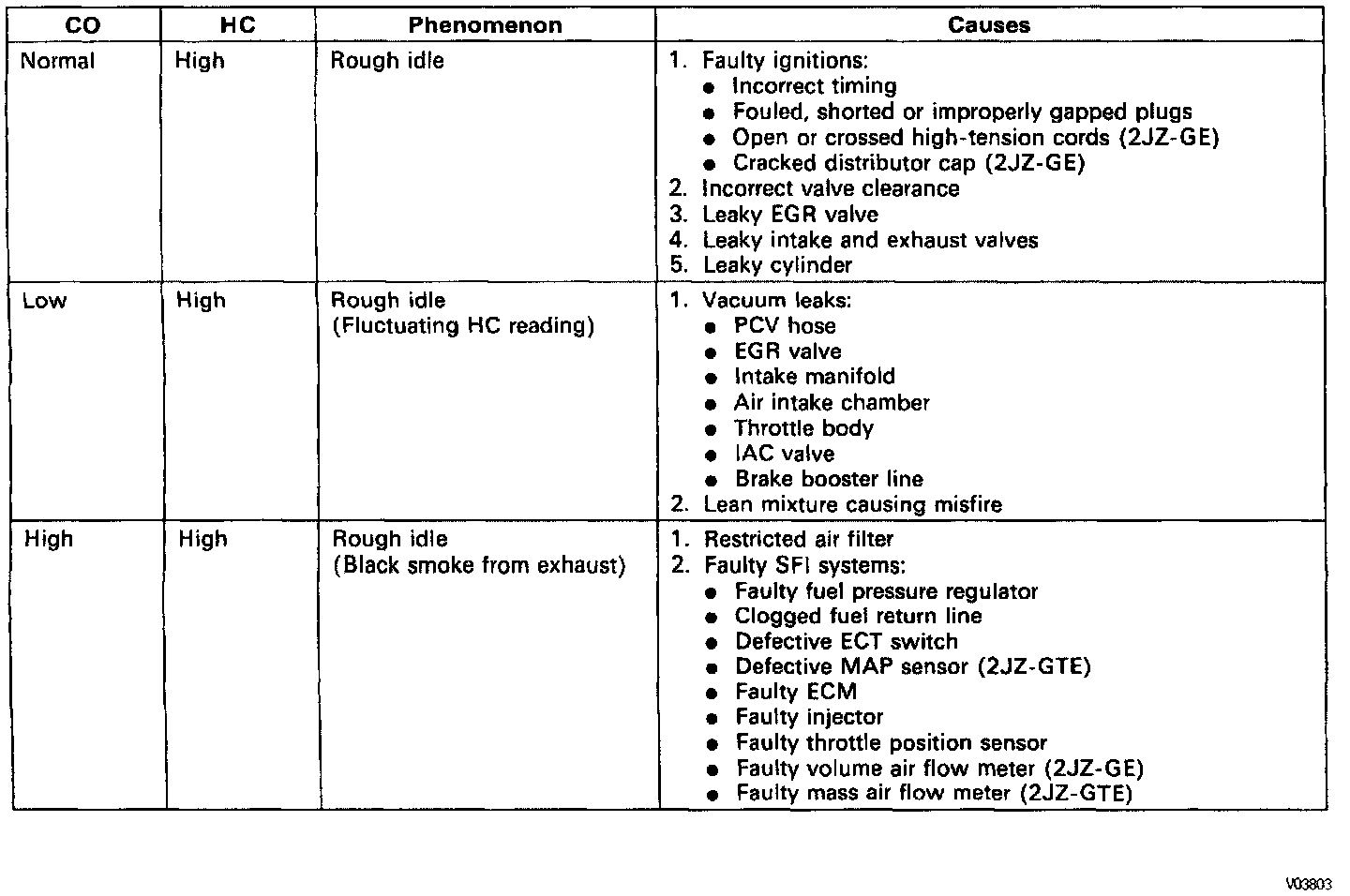 ^ If the CO/HC concentration does not comply with regulations, perform troubleshooting in the order given below.