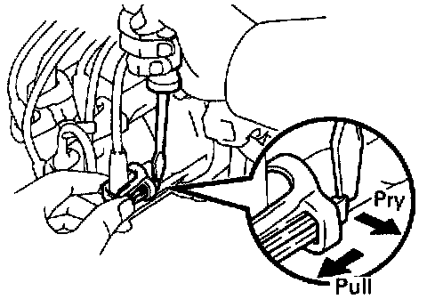 - Using a screwdriver, lift up the lock claw and disconnect the holder from the distributor (ignition coil).