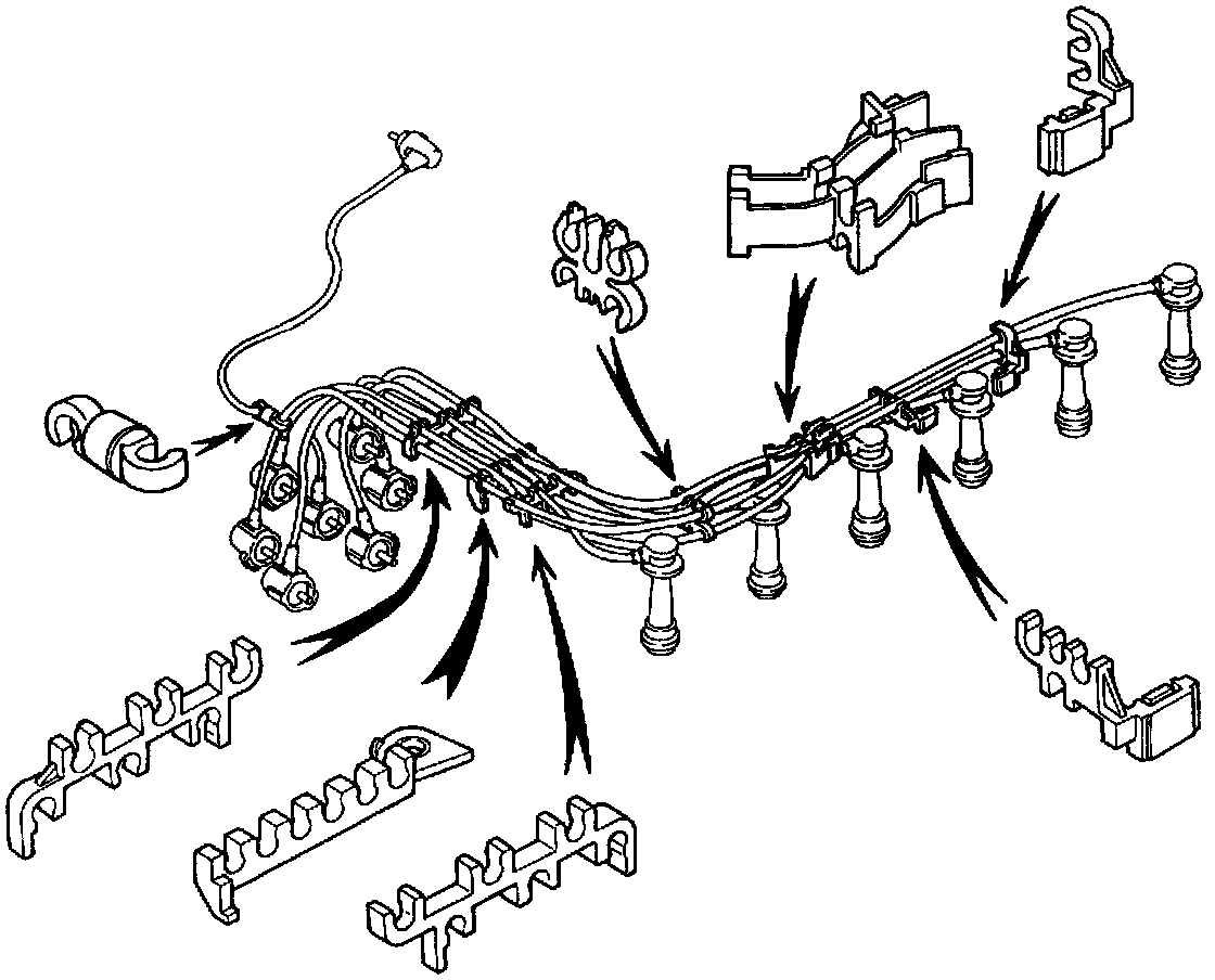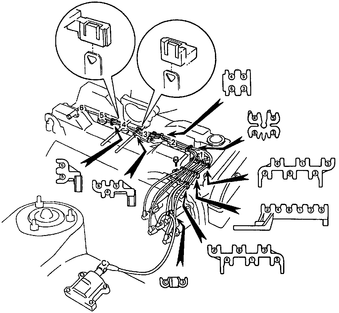 (c) Secure the high - tension cords with the 8 cord clamps as shown in the illustration.