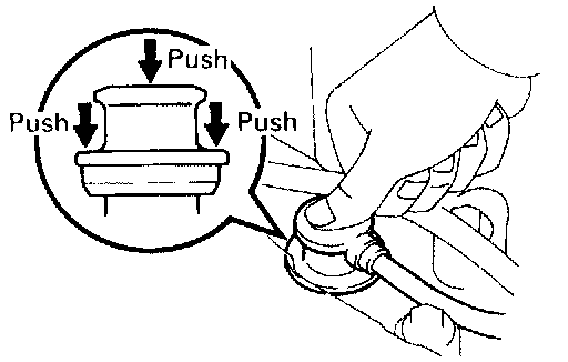 - Push in the holder together with the grommet until the claw of the holder locks securely.