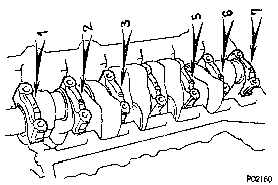 ^ Use the pattern shown in the illustration when loosening the main bearing cap bolts.