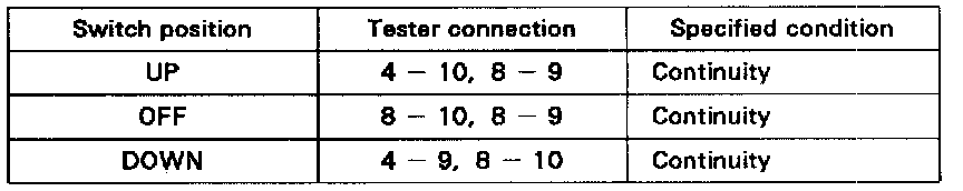 If continuity is not as specified, replace the switch.