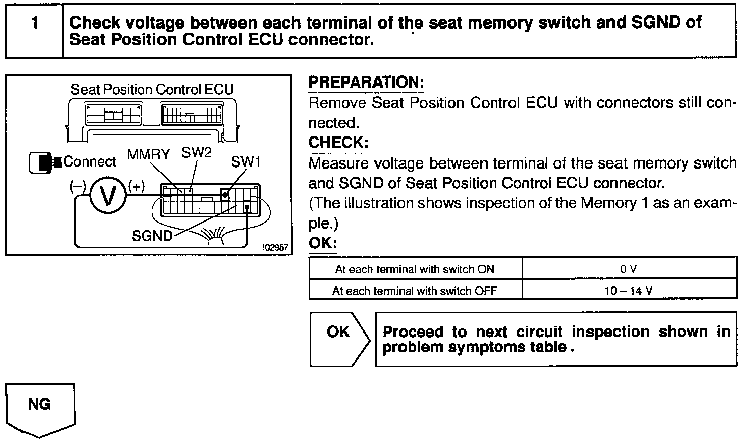 Seat memory switch send memory and return signals to the seat position control ECU.