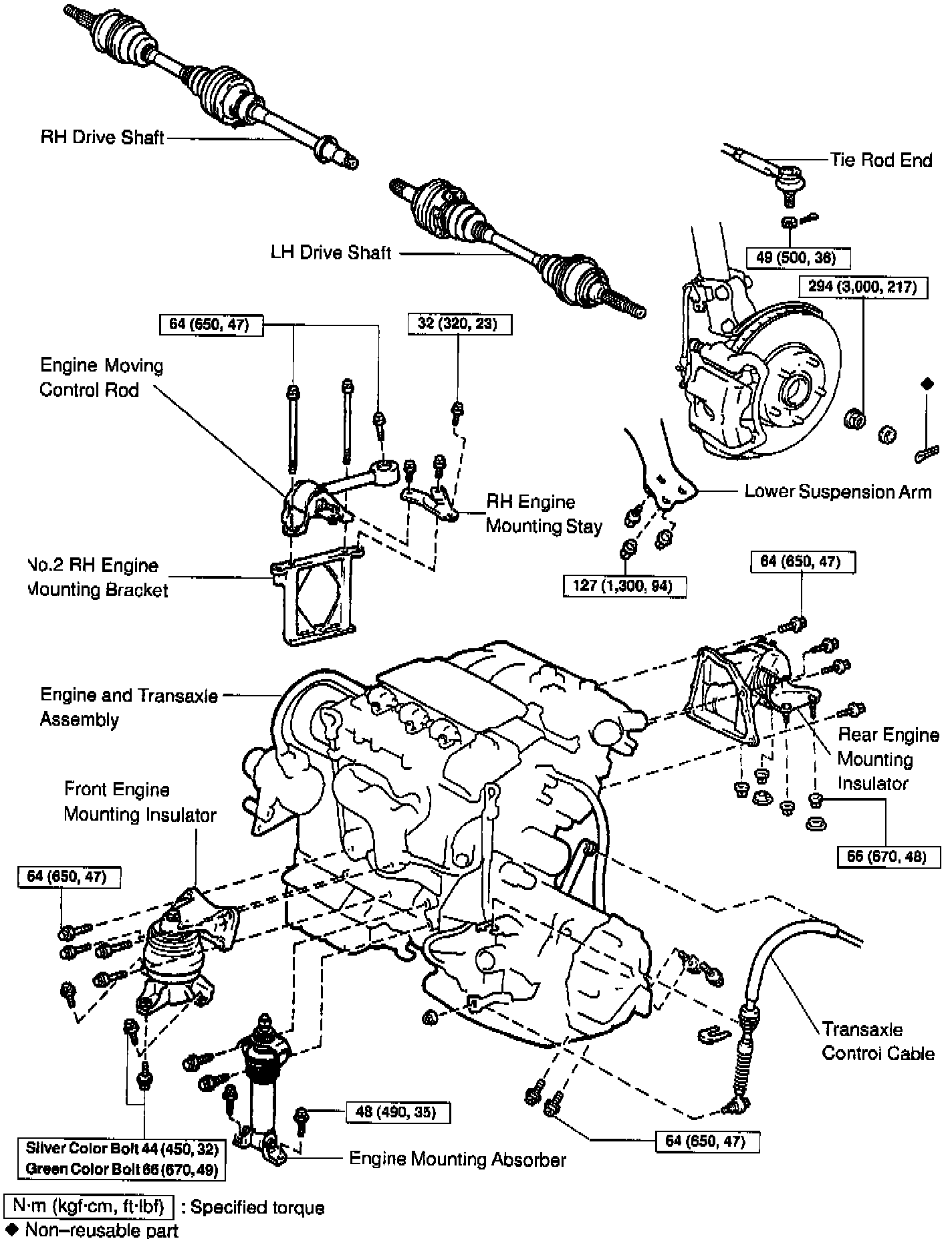 ENGINE MOUNTING INSULATORS, ABSORBER AND No.2 RH BRACKET