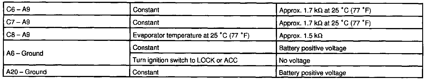b. Disconnect the connector from amplifier and inspect the connector on the wire harness side, as shown in the chart.