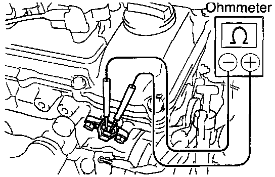 (b) Inspect the camshaft position sensor resistance. Using an ohmmeter, measure the resistance between terminals.