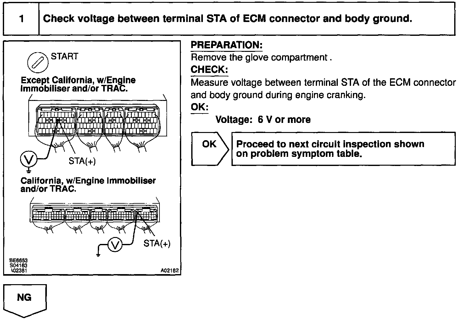 When the engine is cranked, the intake airflow is slow, so fuel vaporization is poor A rich mixture is therefore necessary in order to achieve good startability. While the engine is being cranked, the battery positive voltage is applied to terminal STA of the ECM. The starter signal is mainly used to increase the fuel injection volume for the starting injection control and after-start injection control.