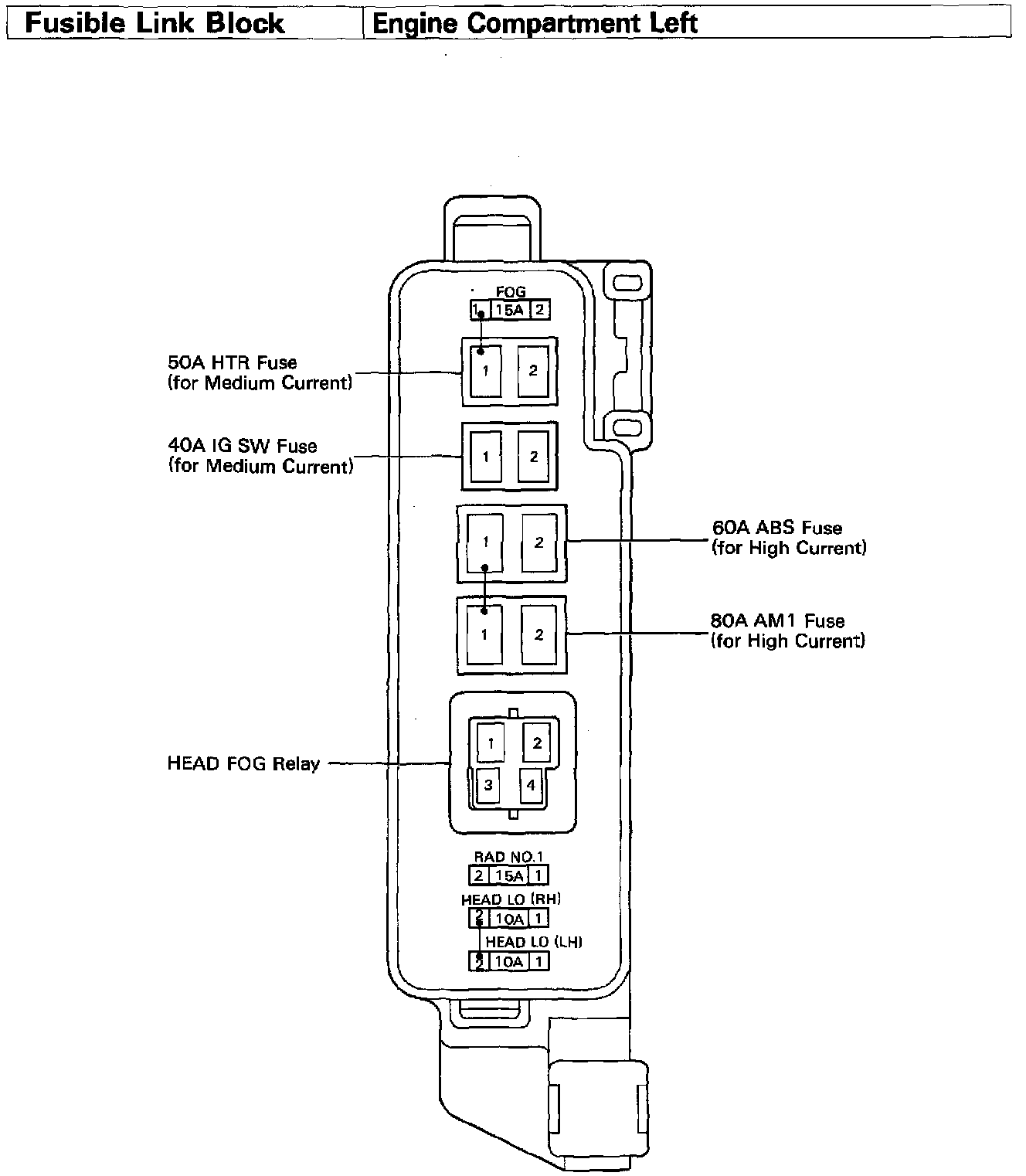 Locations-Fusible Link Block Engine Compartment Left (Fig 29):
