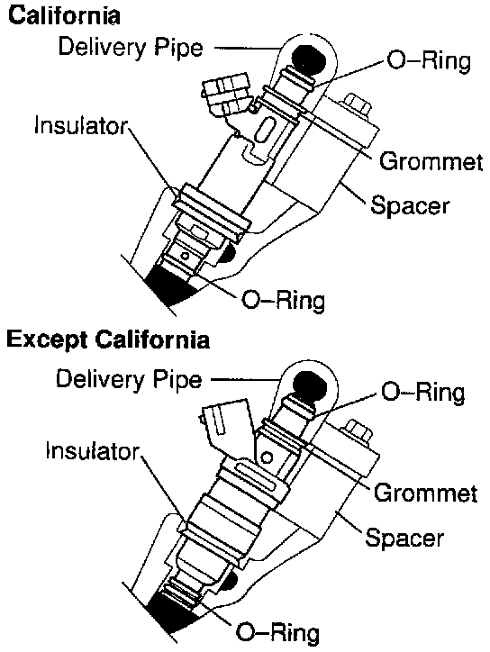 Before installing the injector, must apply spindle oil or gasoline on the place where a delivery pipe or an intake manifold touches an O-ring of the injector.