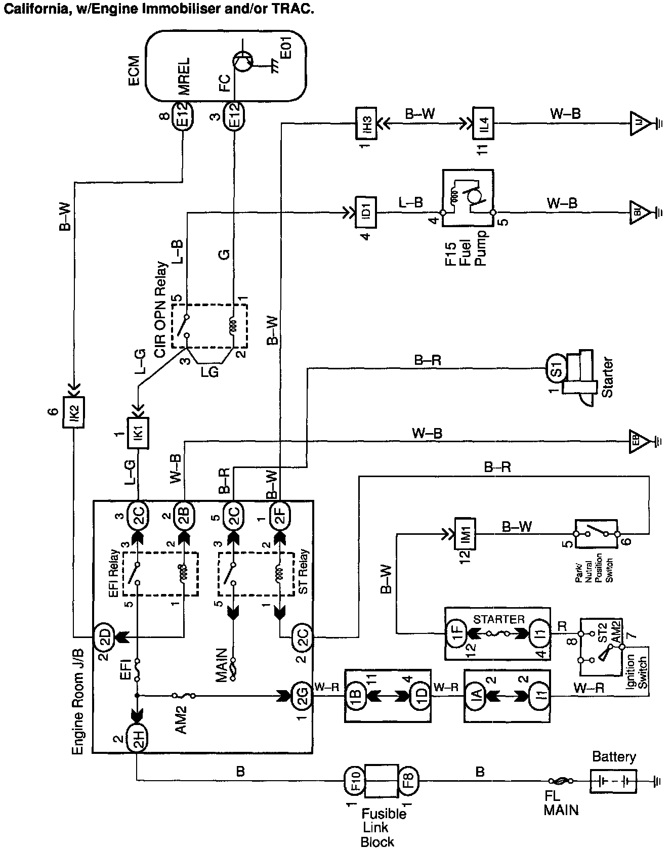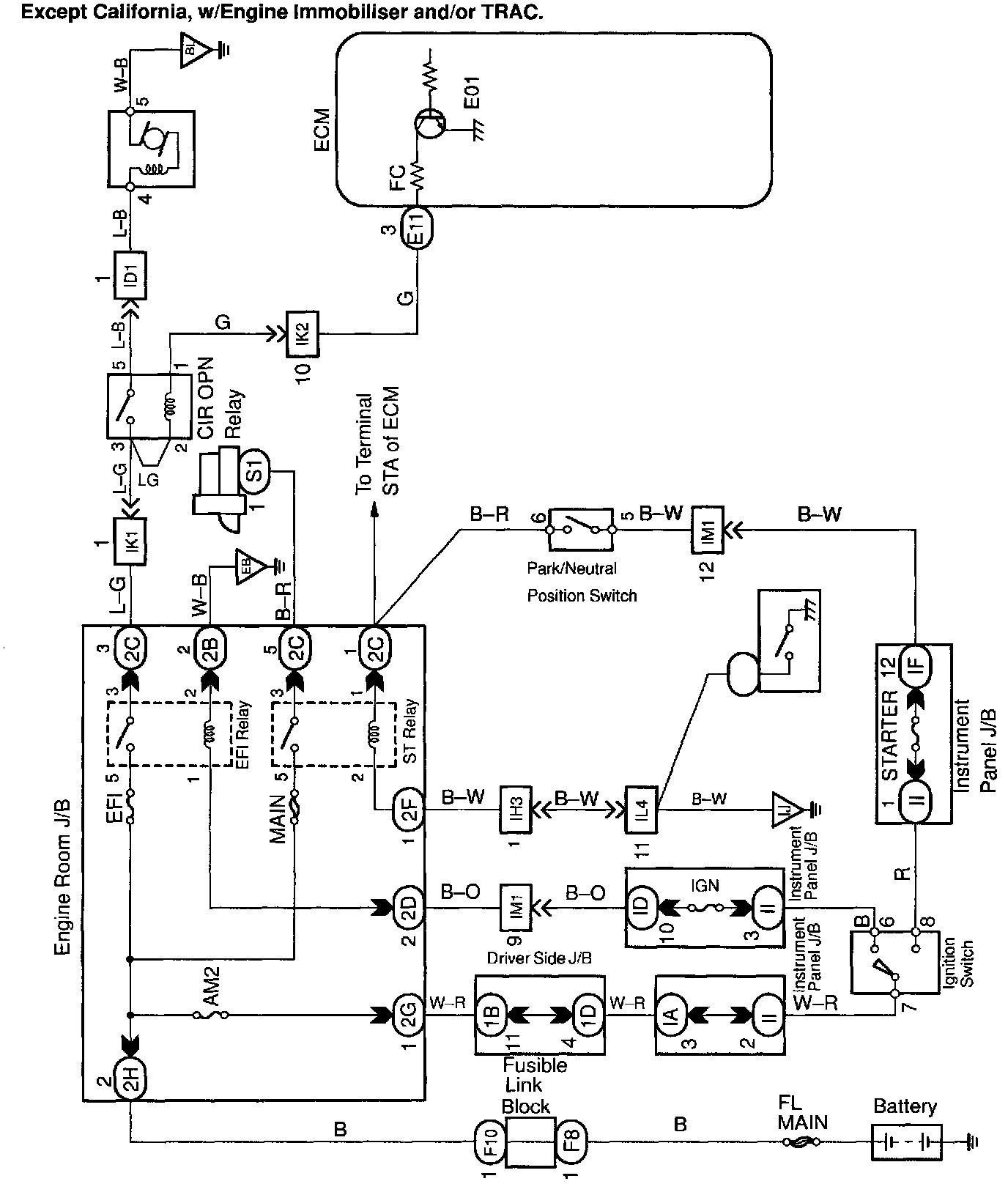 In the diagram above, when the engine is cranked, current flows from terminal ST of the ignition switch to the starter relay coil and also current flows to terminal STA of ECM (STA signal).