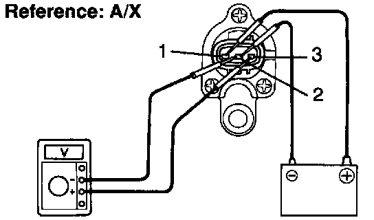 d. Check that there is voltage change from approx. 0 V to 11 V or more between terminals 2 and 3.