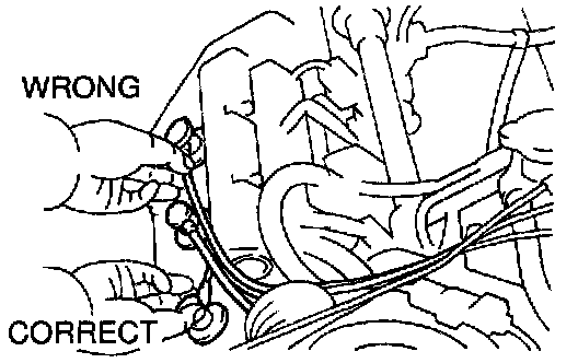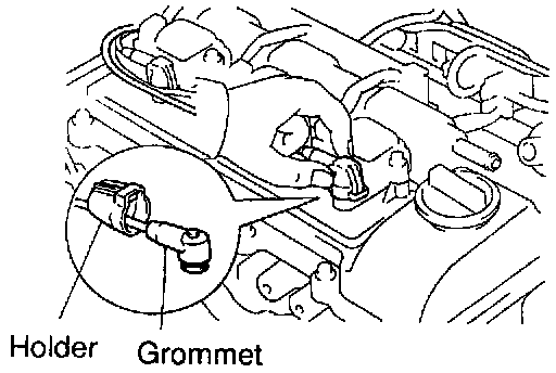 NOTICE: Check that the holder is correctly installed to the grommet and ignition coil as shown in the illustration.