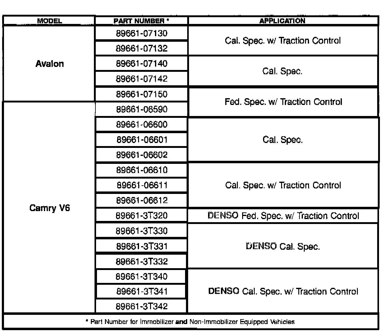 On some non-immobilizer equipped 1998 Camry and Avalon models, the ECM used is the same as for Immobilizer equipped vehicles. For these models, it is necessary to register a "without engine Immobilize" code to prevent permanent failure of the ECM.