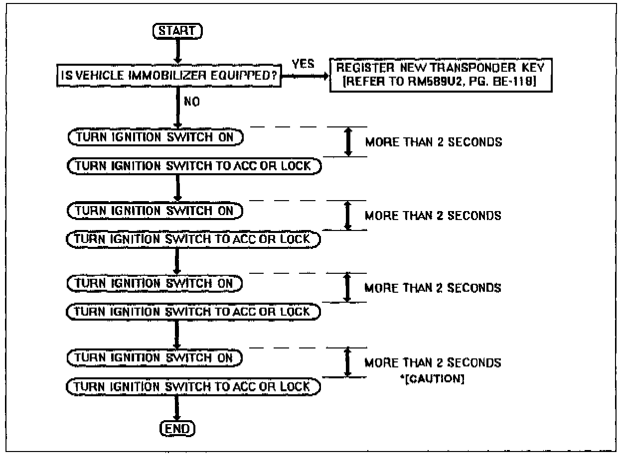 Two seconds after turning the ignition switch ON the fourth time, the code that designates "without engine immobilizer" will be registered in the ECM.
