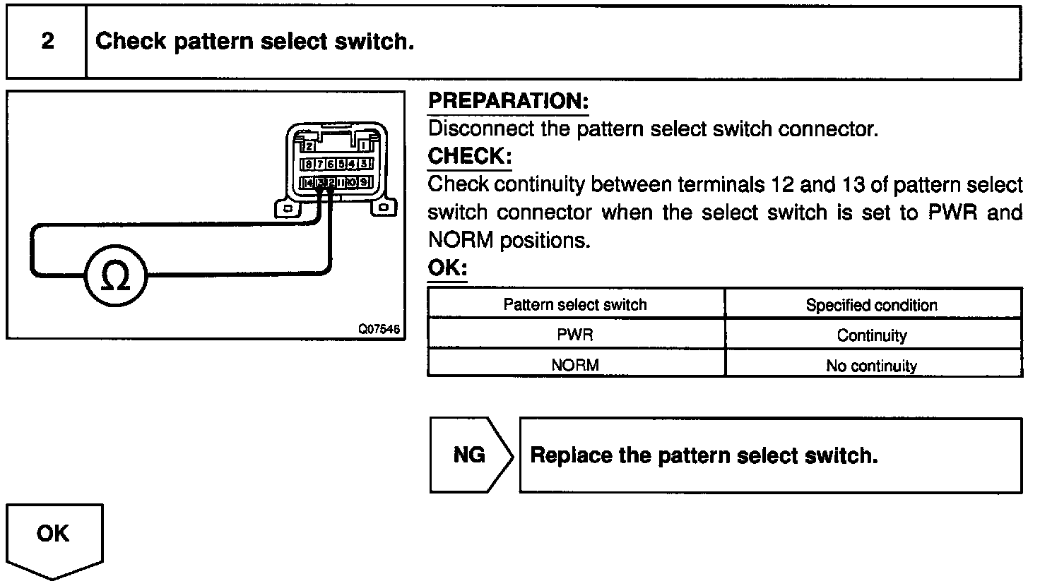 The ECM memory contains the shift programs for the NORMAL and P0WER patterns, 2 position, L position and the lock-up patterns. Following the programs corresponding to the signals from the pattern select switch, the park/neutral position and other various sensors, the ECM switches the solenoid valves ON and OFF, and controls the transmission gear change and the lock-up clutch operation.