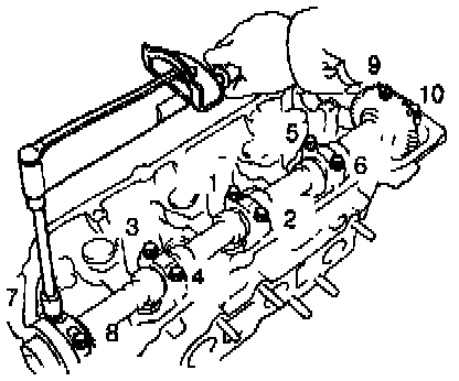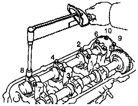Exhaust Camshaft Bearing Cap Removal Sequence: LH Cylinder Head: