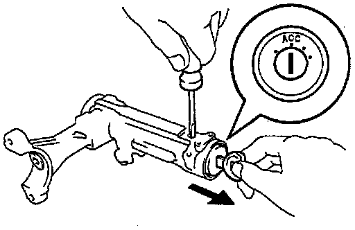 b. Push down the stop pin with a driver, and pull out the key cylinder.