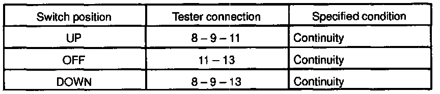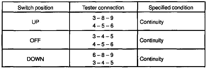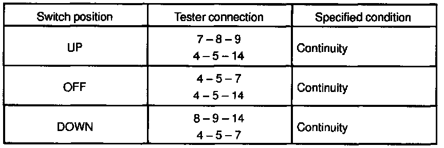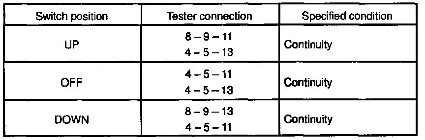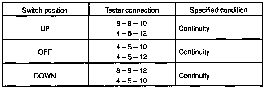 INSPECT POWER WINDOW SWITCH CONTINUITY