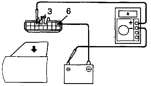 b. Connect the positive (+) lead from the ammeter to terminal 3 on the wire harness side connector and the negative (-) lead to the negative terminal of the battery.