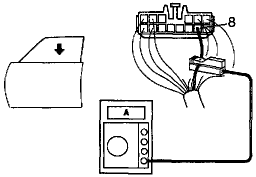b. Attach a current-measuring probe to terminal 8 of the wire harness.