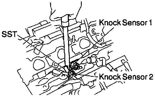 (b) Using SST, remove the knock sensor. SST 09817-16011