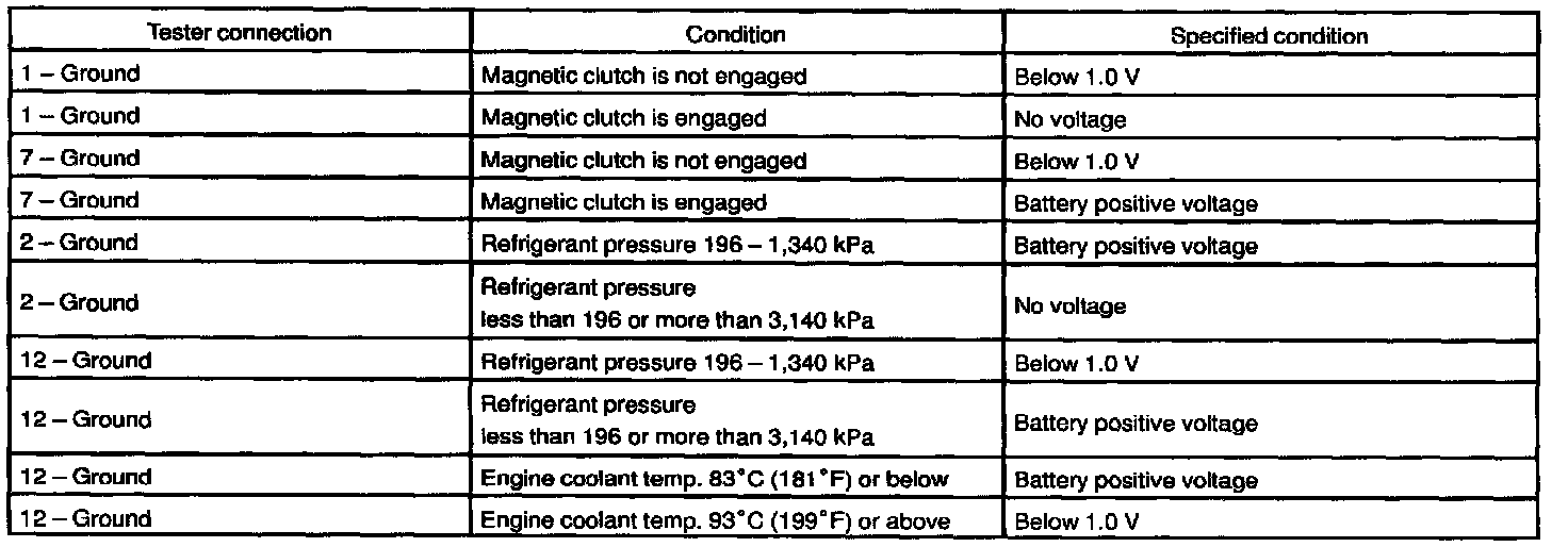 a. Disconnect the amplifier connector and inspect the connector on wire harness side, as shown in the chart.