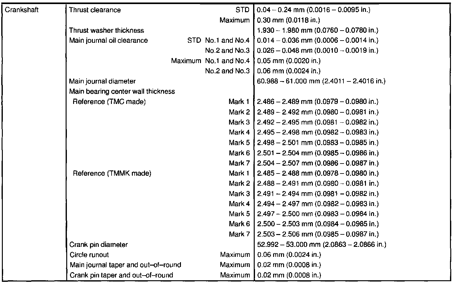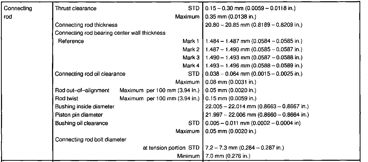 1MZ-FE Engine Mechanical Data: