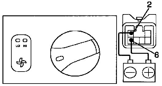 INSPECT HEATER CONTROL ASSEMBLYa. Connect the positive (+) lead from the battery to terminal 2 and negative (-) lead to terminal 6 then check that the illumination lights up