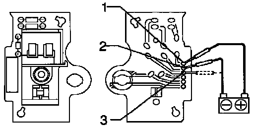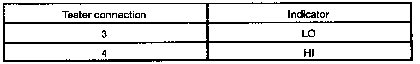 b. Connect the positive (+) lead from the battery to terminal 1 and negative (-) lead to each terminal, then check that the "LO and "HI" indicators light up as shown in the chart.