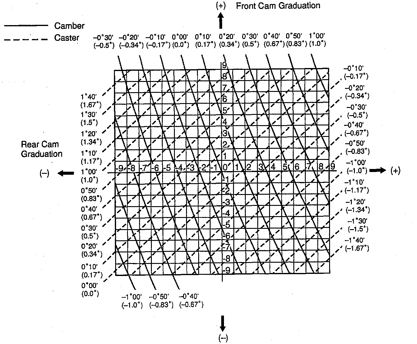 Caster: 2°30'-2°40' = -0°10'