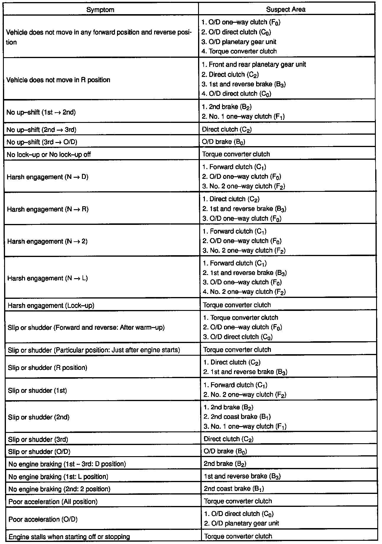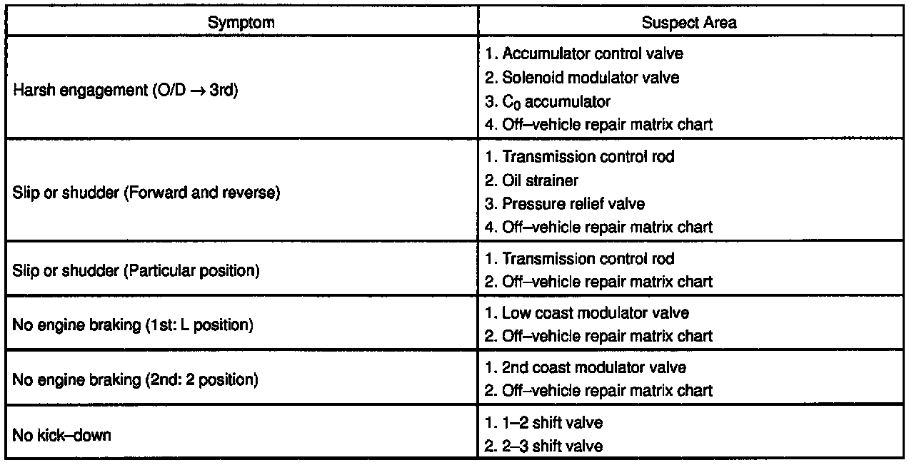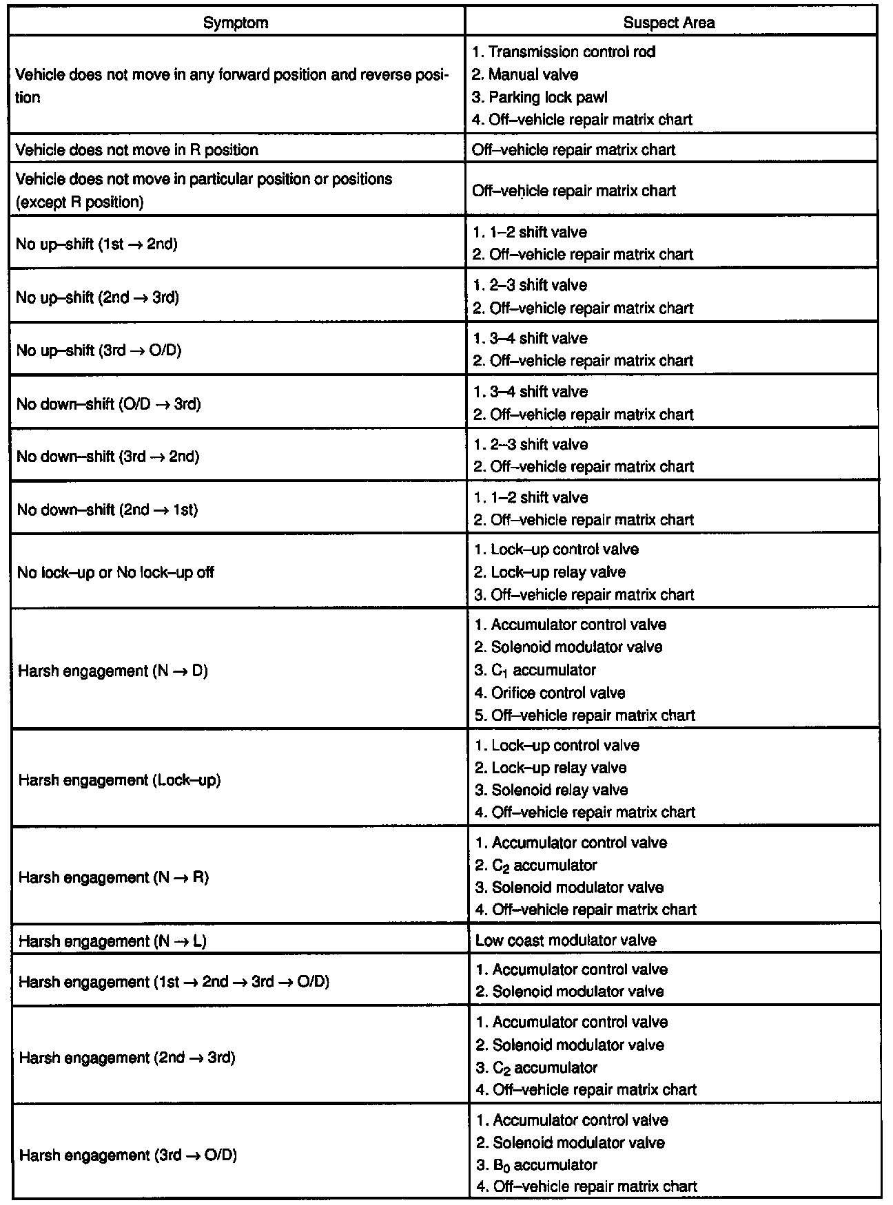 2: On-vehicle Repair Matrix Chart Chapter