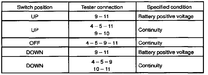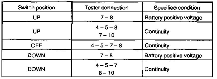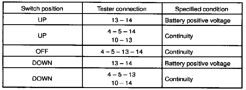 INSPECT POWER WINDOW SWITCH CONTINUITY