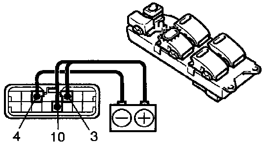Connect the positive (+) lead from the battery to terminal 3 and 10, and the negative (-) lead to terminal 4, and check that all the illuminations light up.