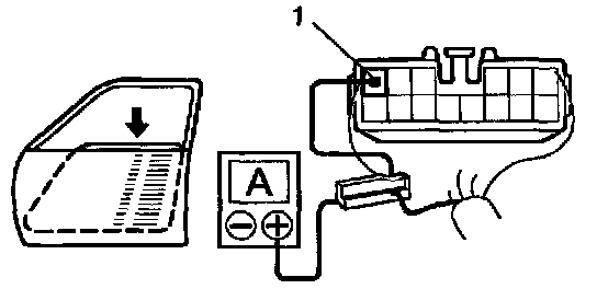 b. Connect the positive (+) lead from the ammeter to terminal 1 on the wire harness side connector and the negative (-) lead to negative (-) terminal of the battery.