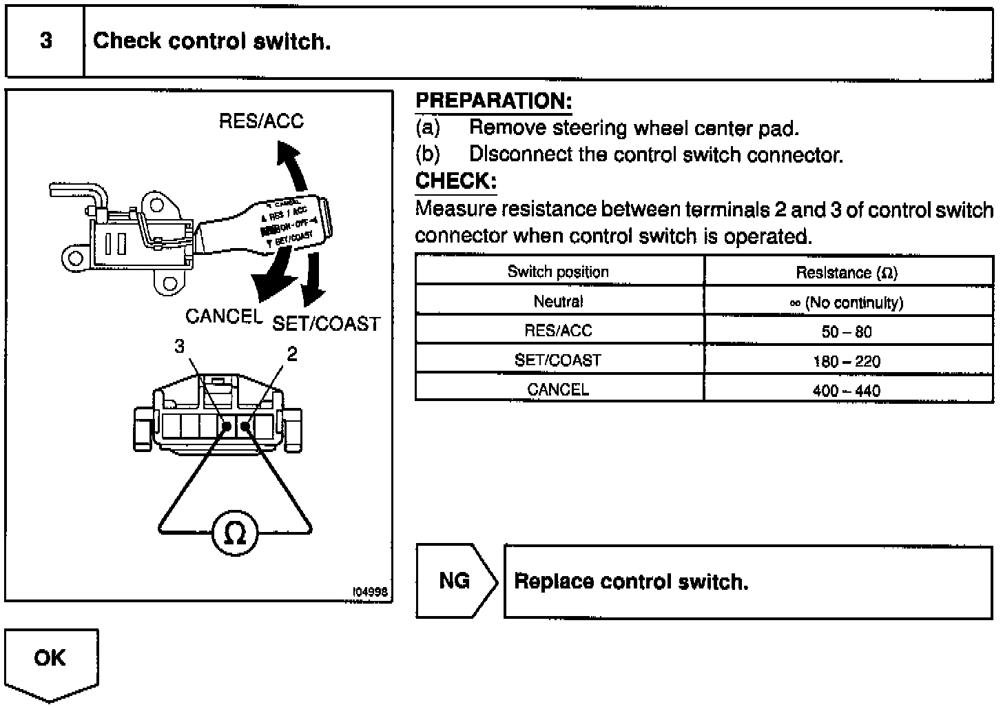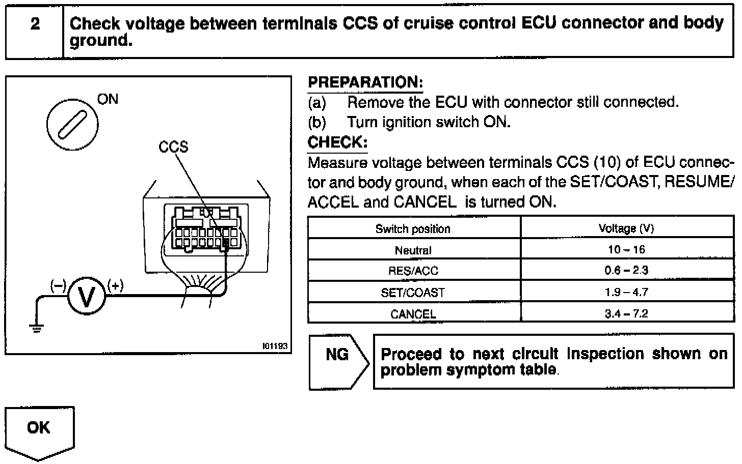This circuit carries the SET/COAST RESUME/ACCEL and CANCEL signals (each voltage) to the ECU.