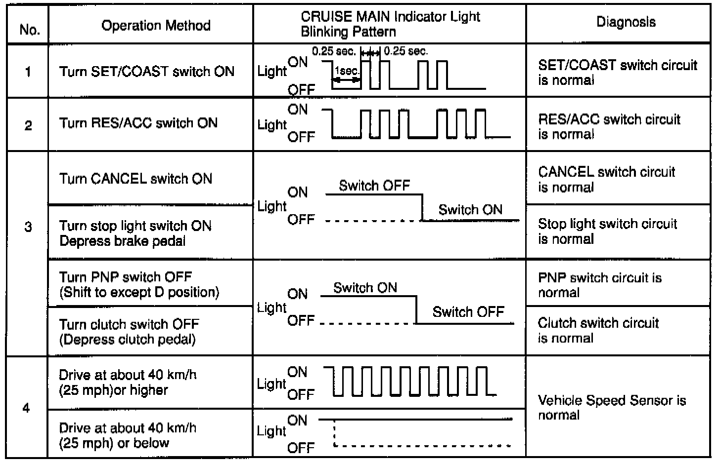 (f) Read the blinking pattern of the CRUISE MAIN indicator light.