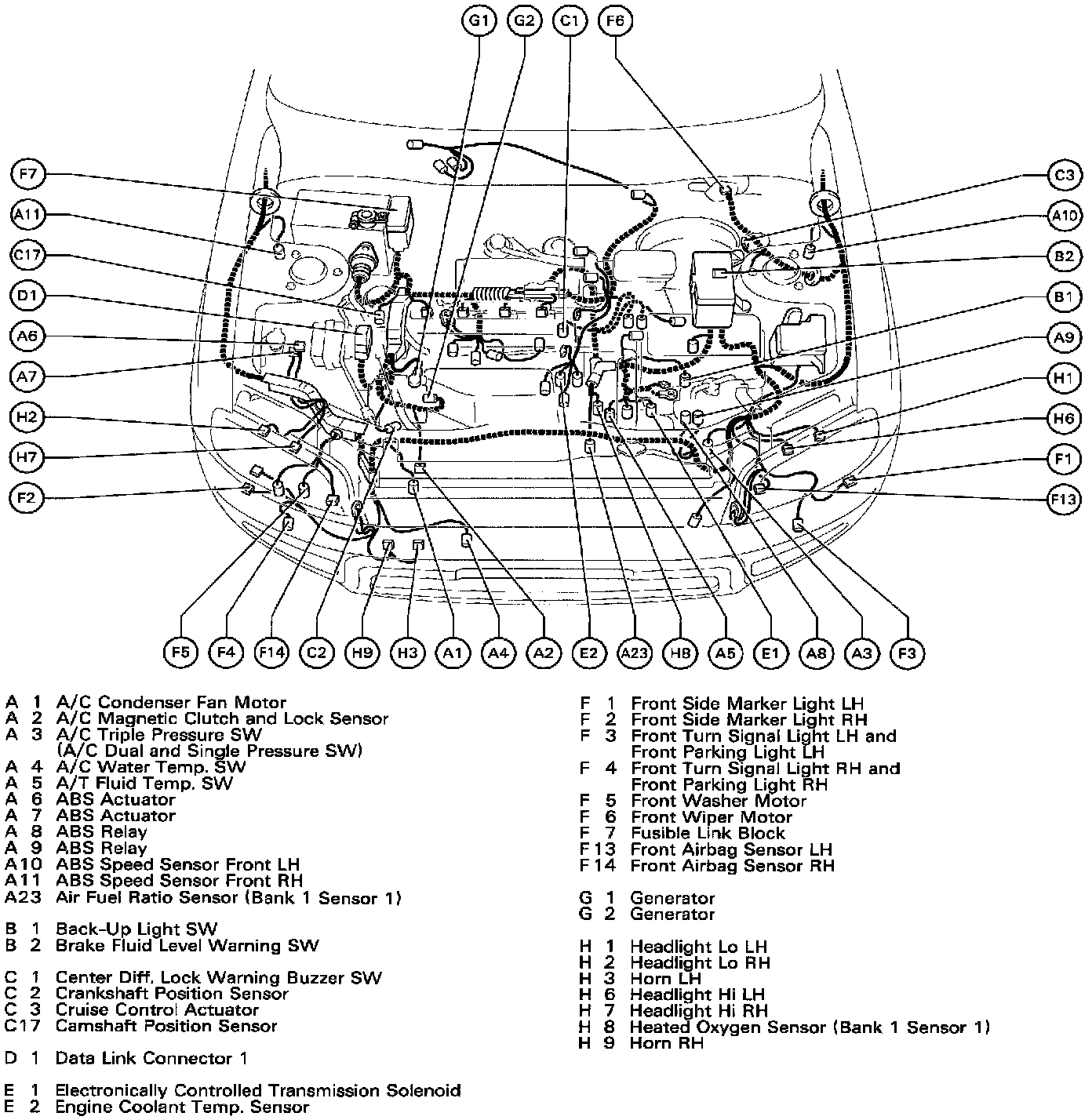 F 1 Front Side Marker Light LH F 2 Front Side Marker Light RH