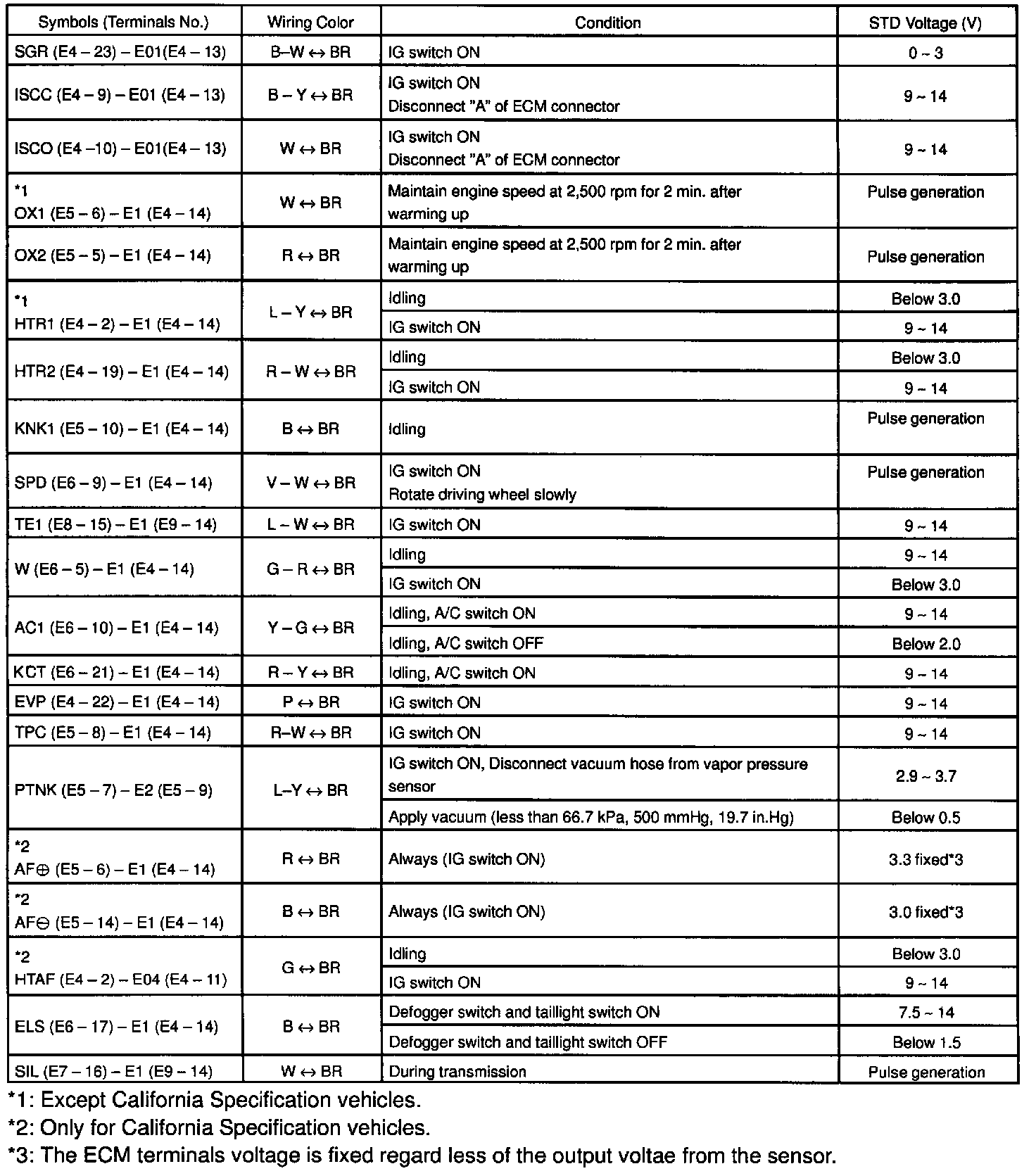 Standard Values of ECM Terminals Part 1 Of 2: