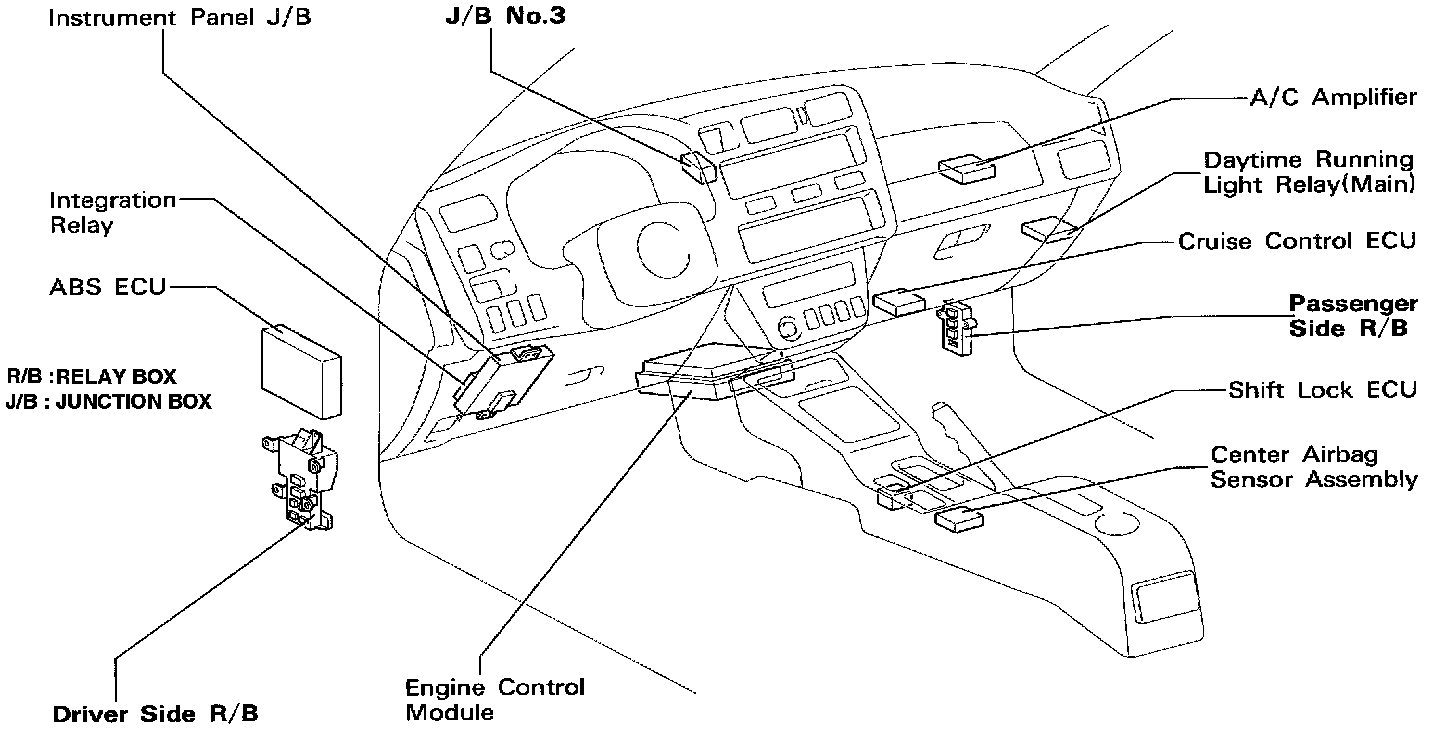 Locations-Passenger Side R/B, Right Kick Panel (Fig 25):