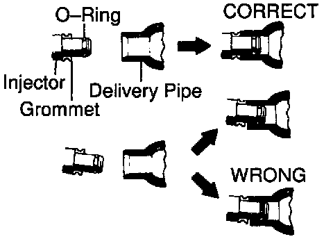 (4) Install the injector to the delivery pipe and intake manifold as shown in the illustration.