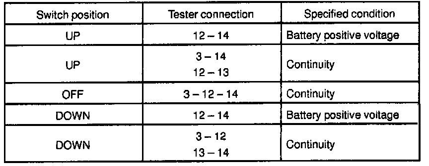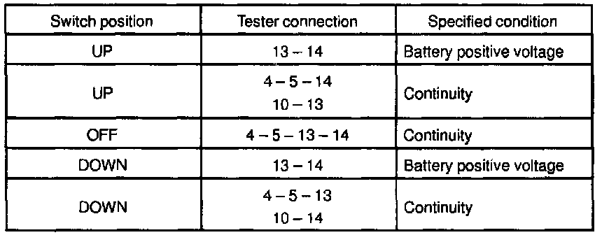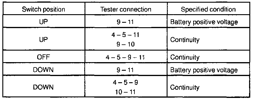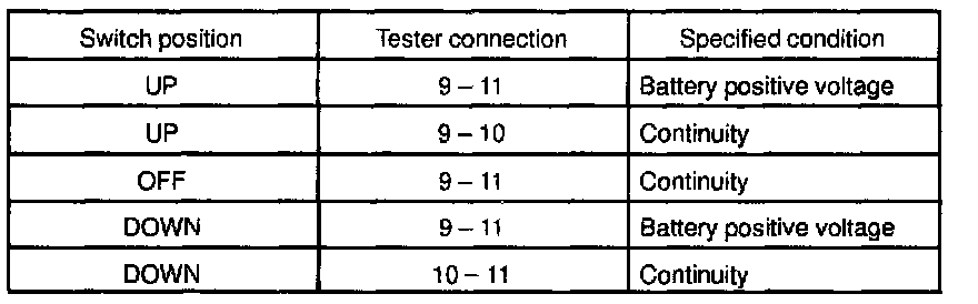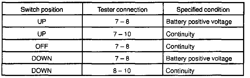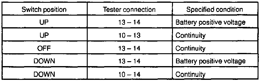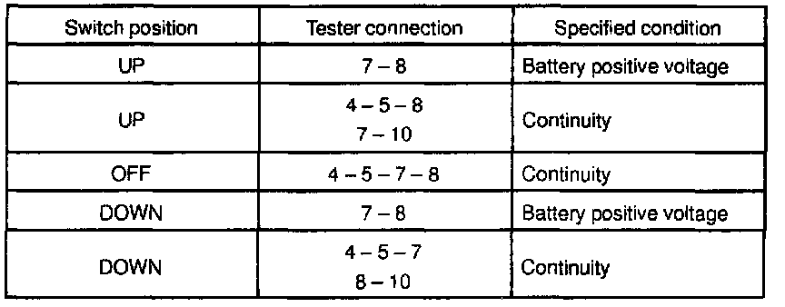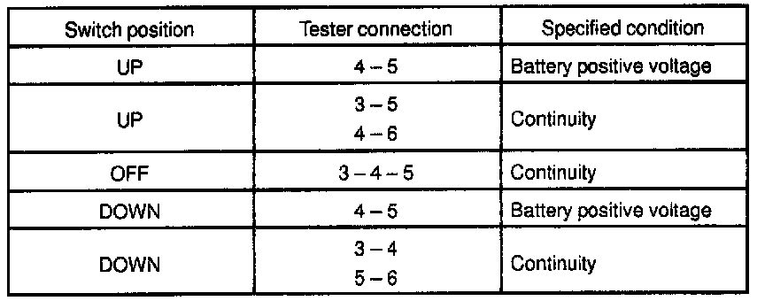 INSPECT POWER WINDOW MASTER SWITCH CONTINUITY