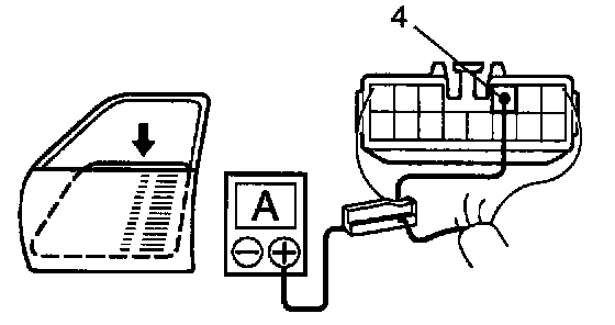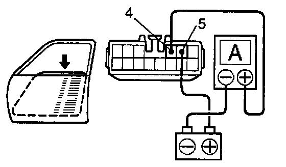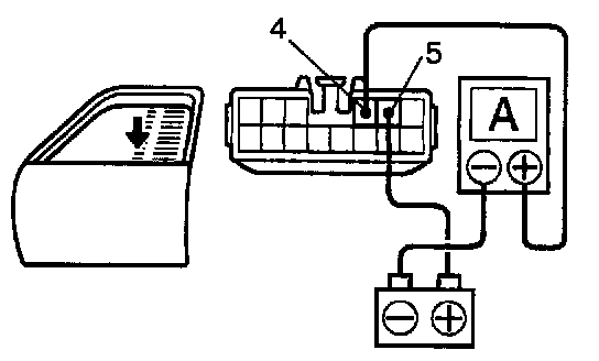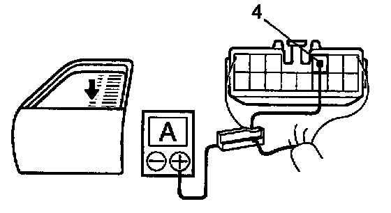 b. Connect the positive (+) lead from the ammeter to terminal 4 on the wire harness side connector and the negative (-) lead to negative (-) terminal of the battery.