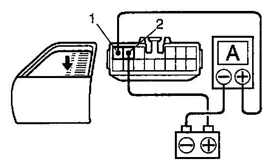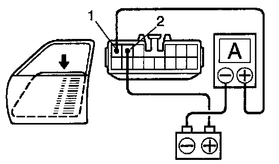 b. Connect the positive (+) lead from the ammeter to terminal 1 on the wire harness side connector and the negative (-) lead to negative (-) terminal of the battery.