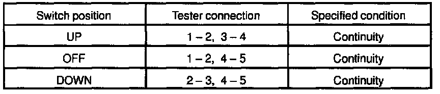 If continuity is not as specified, replace the switch.