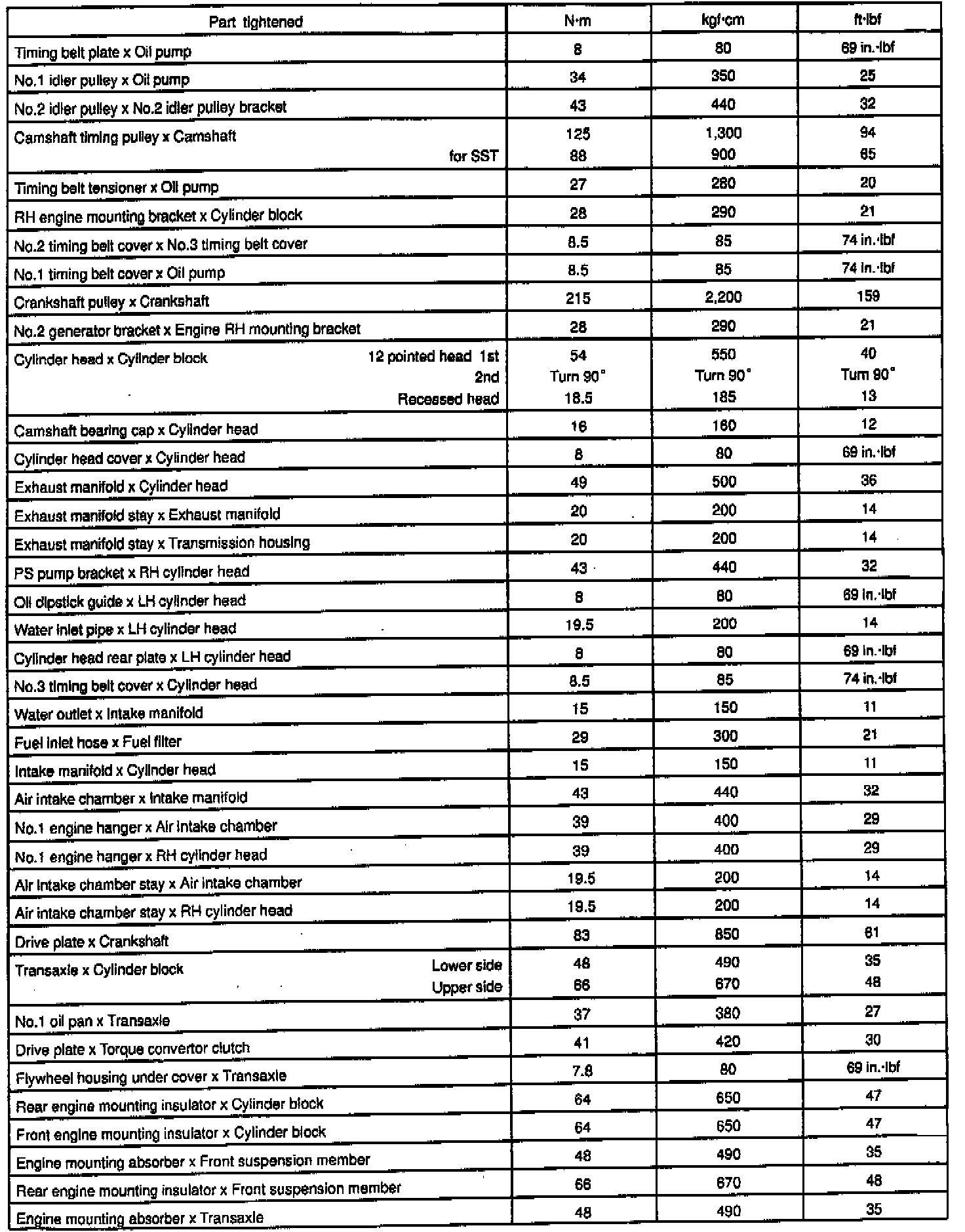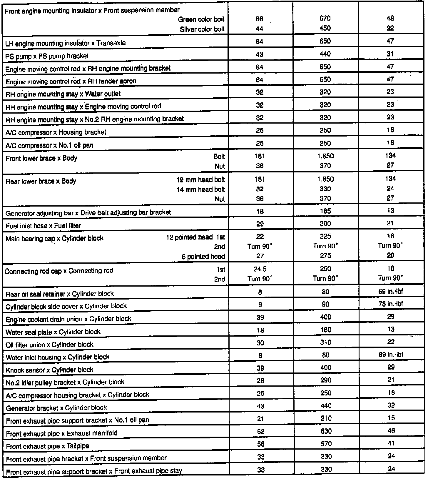 General Torque Specifications